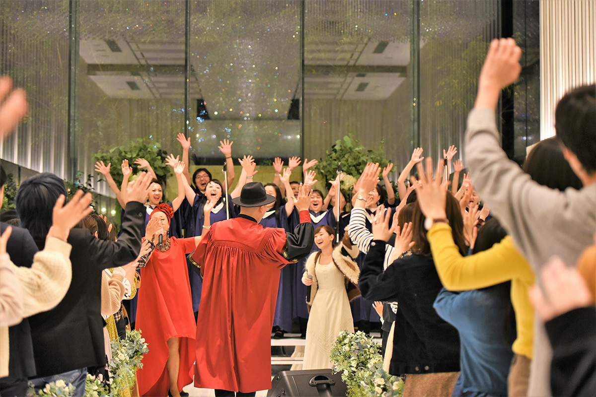 平日の夜にも関わらず、表参道の人気結婚式場『シャルマンシーナ東京(https://tokyo.charmantscena.com)』に、100名の参加者が集まりました。超満員のチャペルで繰り広げられたコンサートは、確かにあの日に想いを馳せた、全身全霊の時間となりました。