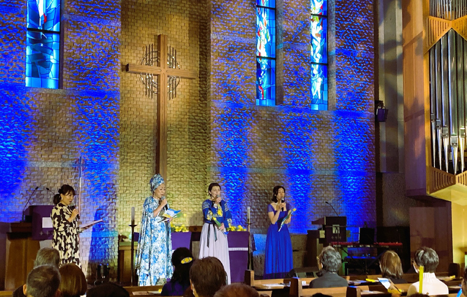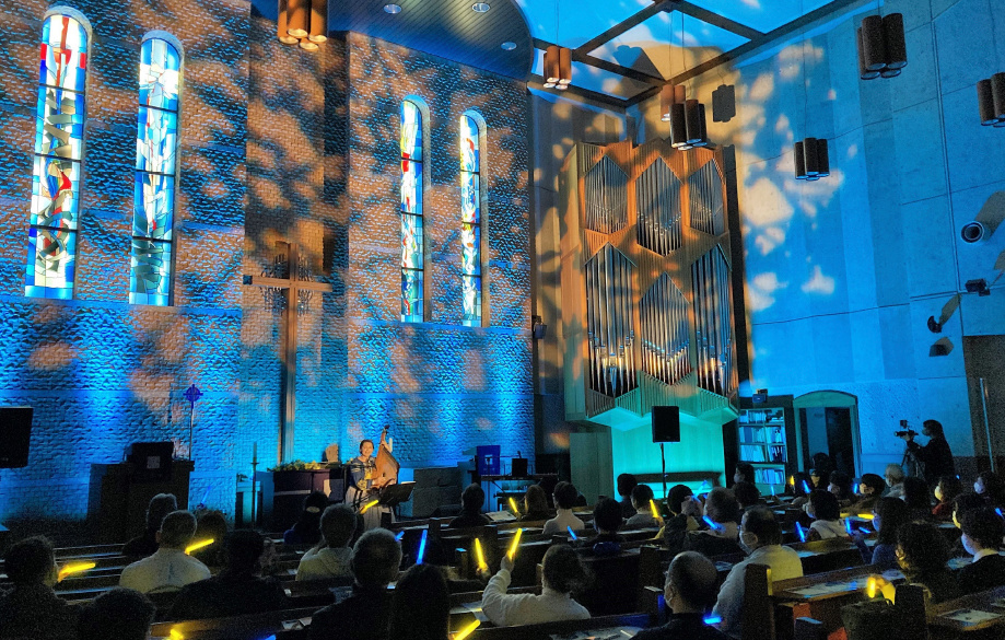 都内の教会をウクライナの色、青と黄で彩り、美しい音楽を共有しました。ウクライナ人のバンドゥーラ奏者・カテリーナさんをお迎えし、キエフの様子と日本で歌い続ける彼女のメッセージに、集まった皆様の想いが溢れました。
